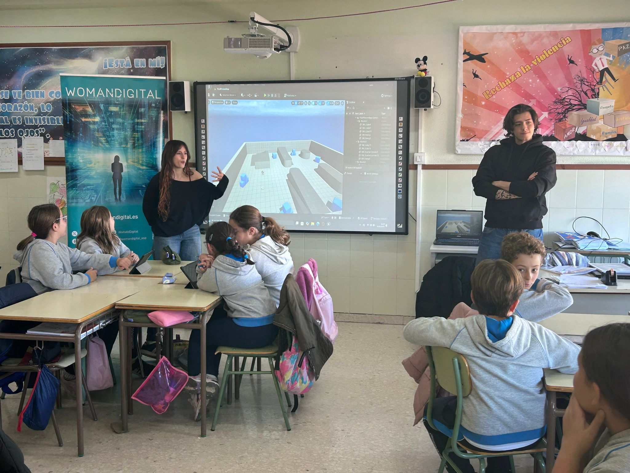 Durante la mañana, más de 90 estudiantes de 5º y 6º de Primaria se sumergieron en tres talleres innovadores diseñados para inspirar, descubrir y compartir conocimientos sobre tecnología, igualdad y creatividad digital.